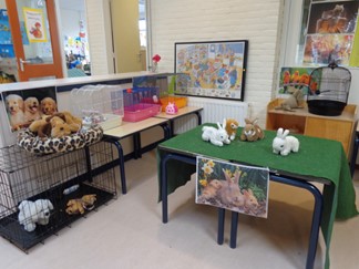We werken een paar weken over een thema. Alle activiteiten, hoeken en knutselwerkjes zijn aangepast aan dit thema.
